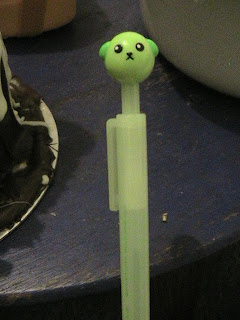 This is a Mameshiba pen, with an edamame bean. This is something I discovered in Japan, and definitely included in my Korea blog. Look it up on YouTube. It's hilarious.